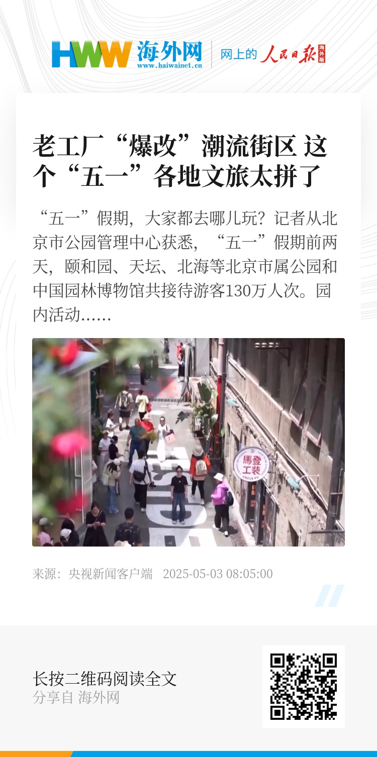 这个“五一”假期,各地工业旅游也掀起热潮。不少地方通过创意改造,让承载着历史记忆的工业遗产悄然“变身”,焕发出新的活力。