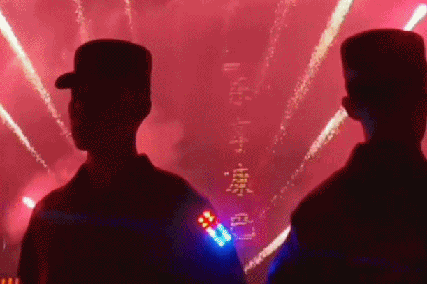 漫天光影下,子弟兵和烟花同框,看到他们的身影就有满满安全感!