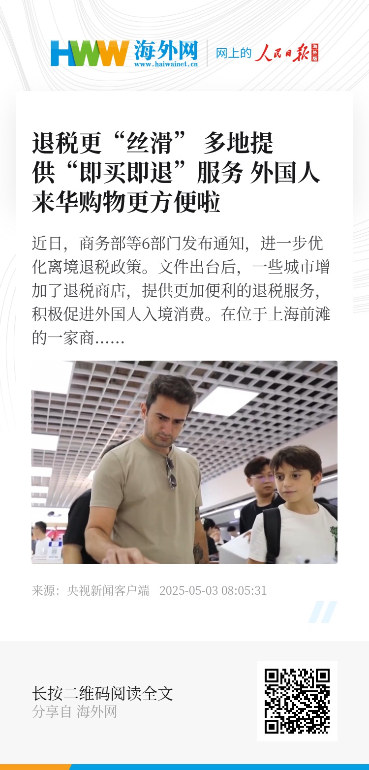 近日,商务部等6部门发布通知,进一步优化离境退税政策。文件出台后,一些城市增加了退税商店,提供更加便利的退税服务,积极促进外国人入境消费。