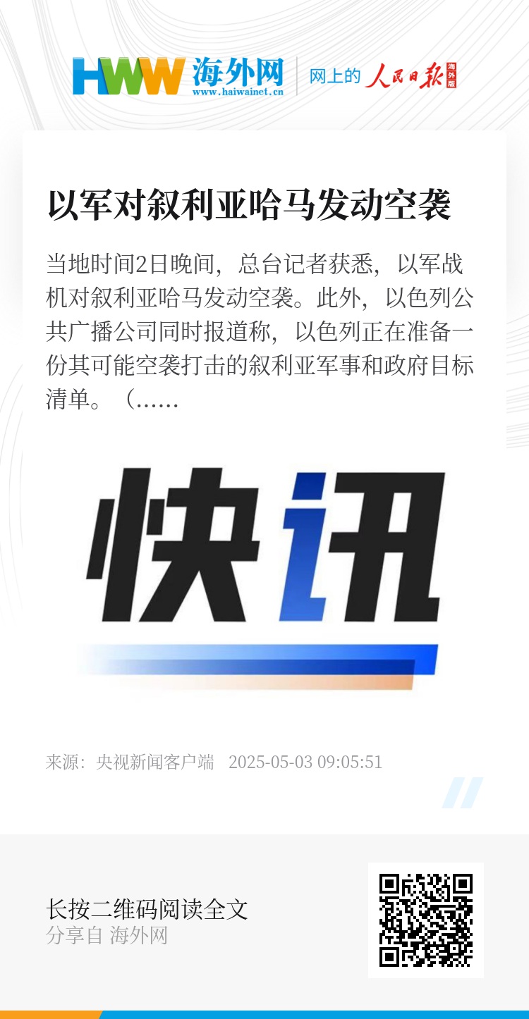 当地时间2日晚间,总台记者获悉,以军战机对叙利亚哈马发动空袭。