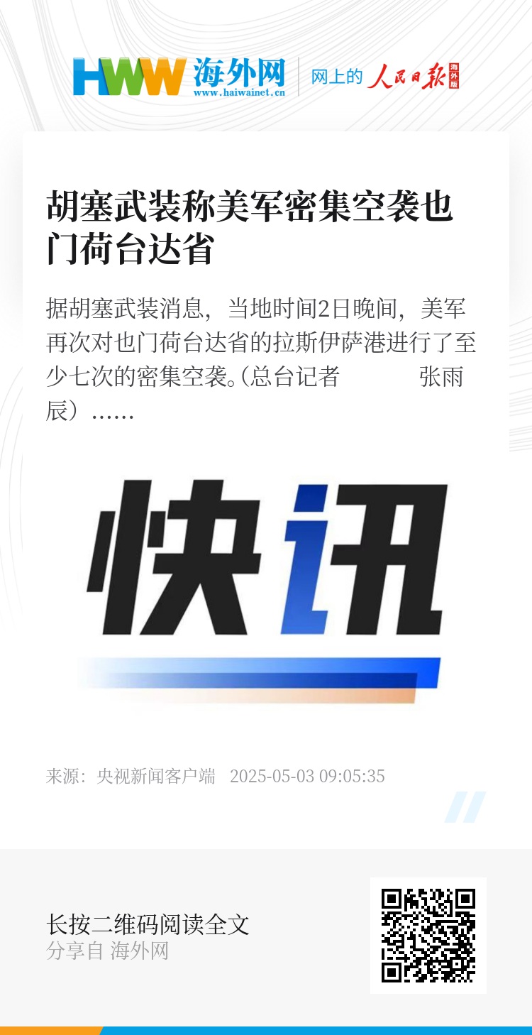 据胡塞武装消息,当地时间2日晚间,美军再次对也门荷台达省的拉斯伊萨港进行了至少七次的密集空袭。(总台记者 张雨辰)