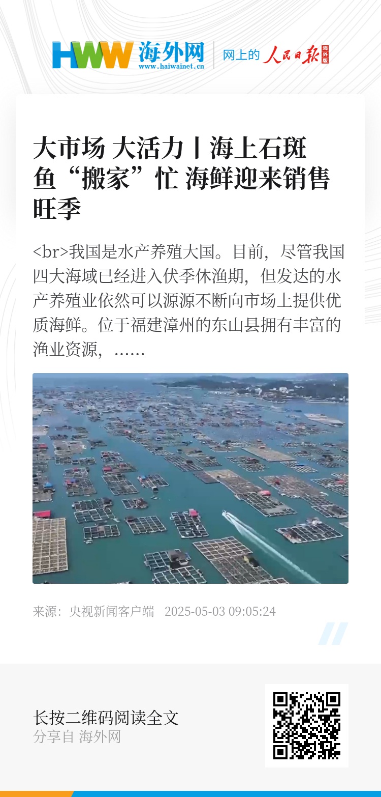 位于福建漳州的东山县拥有丰富的渔业资源,“五一”假期,这里的海产品迎来了销售旺季。那么,当地的海产品是怎么进行养殖和捕捞的?销售情况如何?一起来看↓