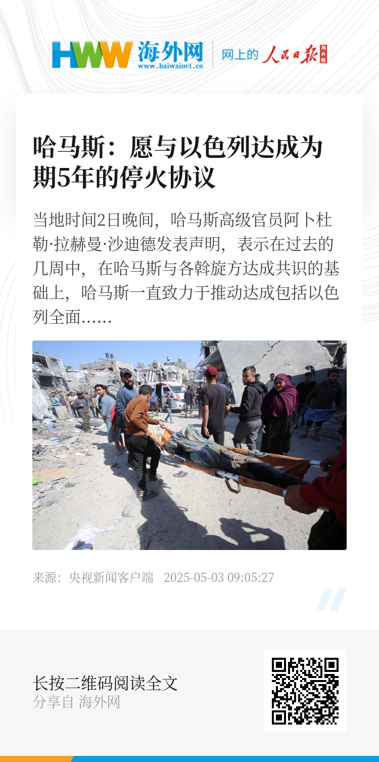 而在今年4月下旬,哈马斯已就加沙停火表达了清晰立场,要求达成一项全面的、可同步实施的协议,包括以色列永久停止对加沙的侵略、以军全面撤出加沙、以色列解除对加沙的封锁并允许物资进入加沙,以及支持加沙重建。