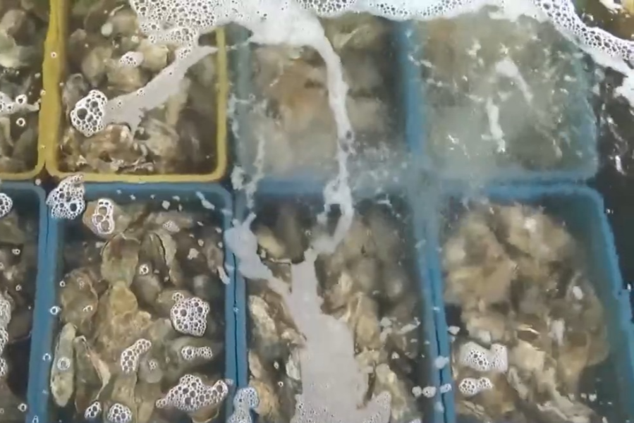 记者随后来到当地一家生蚝加工企业,看到工作人员将刚刚卸货的生蚝进行分拣、清洗、净化,去除体内泥沙和杂质,这些新鲜的生蚝第二天便可发往全国各地。