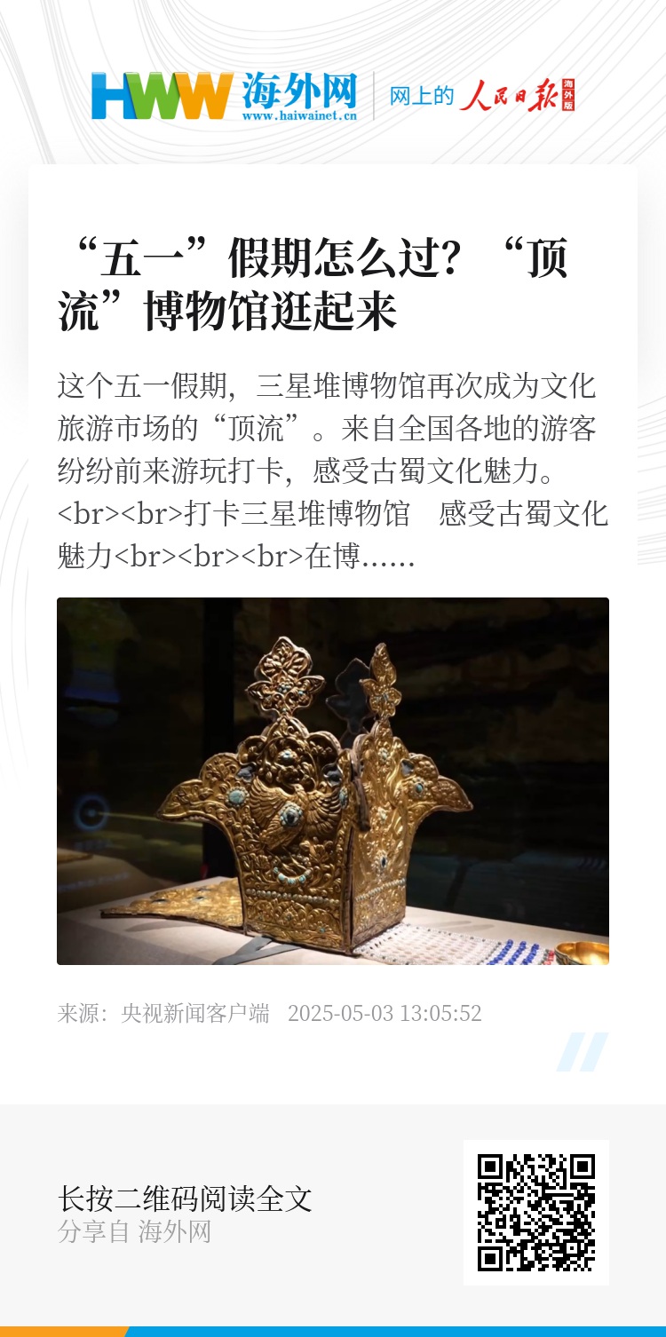 这个五一假期,三星堆博物馆再次成为文化旅游市场的“顶流”。来自全国各地的游客纷纷前来游玩打卡,感受古蜀文化魅力。