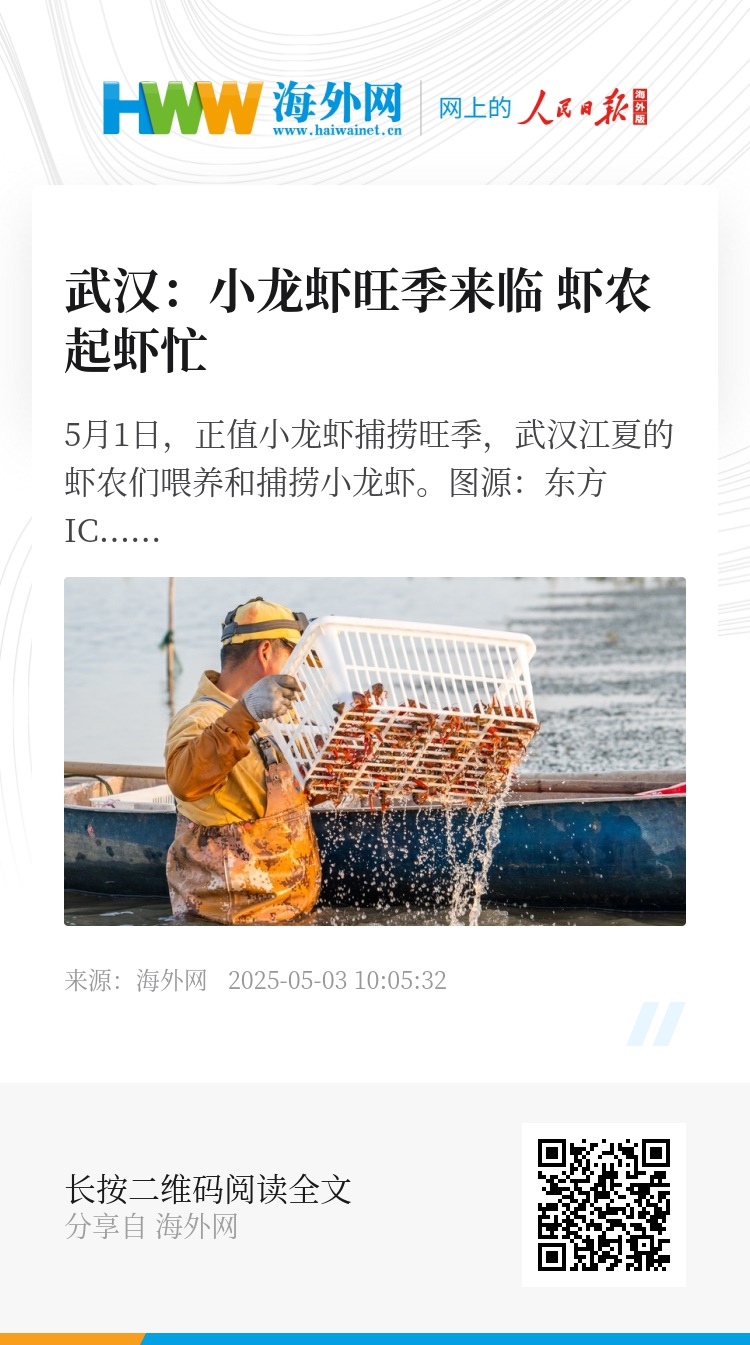 32859889,.武汉:小龙虾旺季来临 虾农起虾忙,.2025-05-03 10:41:32,.204428,.张青津、卢思宇