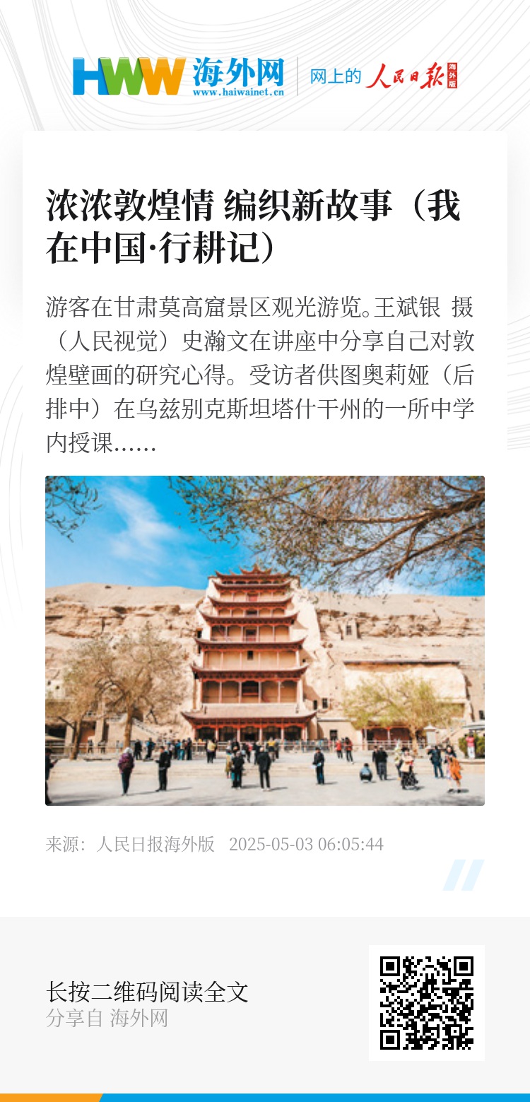 史瀚文始终相信,敦煌和莫高窟是中国最具代表性的文化软实力之一。它们不仅展现了中华文明的创造力与包容性,也体现了历久弥新的精神价值。“我非常希望通过自己的研究与传播,让世界更深入地了解敦煌,了解中国丰富深厚的文化传统。”(记者 银燕)