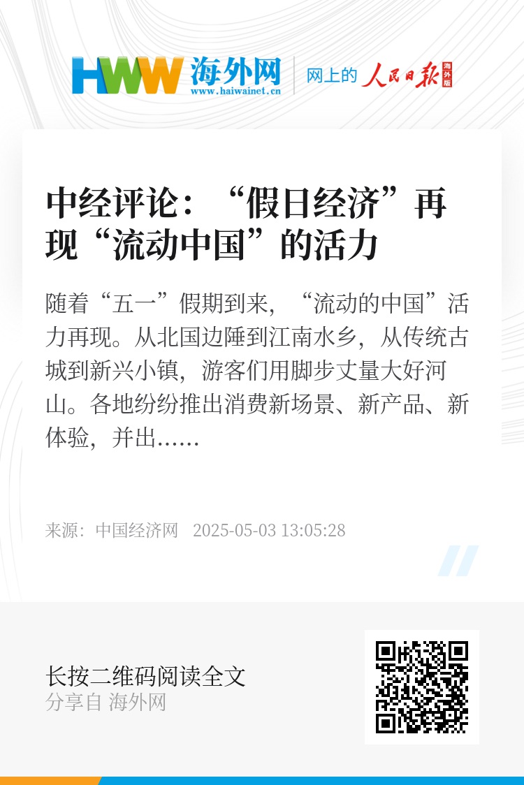 文旅消费不仅是提升生活品质的有效途径,更是拉动经济增长的重要引擎。今年“五一”,文旅市场亮点频现,呈现出多样化、个性化特征:长线游热度飙升,山西繁峙千年壁画探秘、云南腾冲雨林徒步等特色玩法备受青睐;“小城游”持续火爆,吉林白山的静谧、海南文昌的椰风海韵、新疆喀什的异域风情……这些小城凭借“错峰避堵、深度体验”的优势吸引着大批游客;跨境游双向升温,入境游便利化与离境退税政策,推动来华购物成新趋势,与此同时,中国游客的足迹也遍布世界各地。