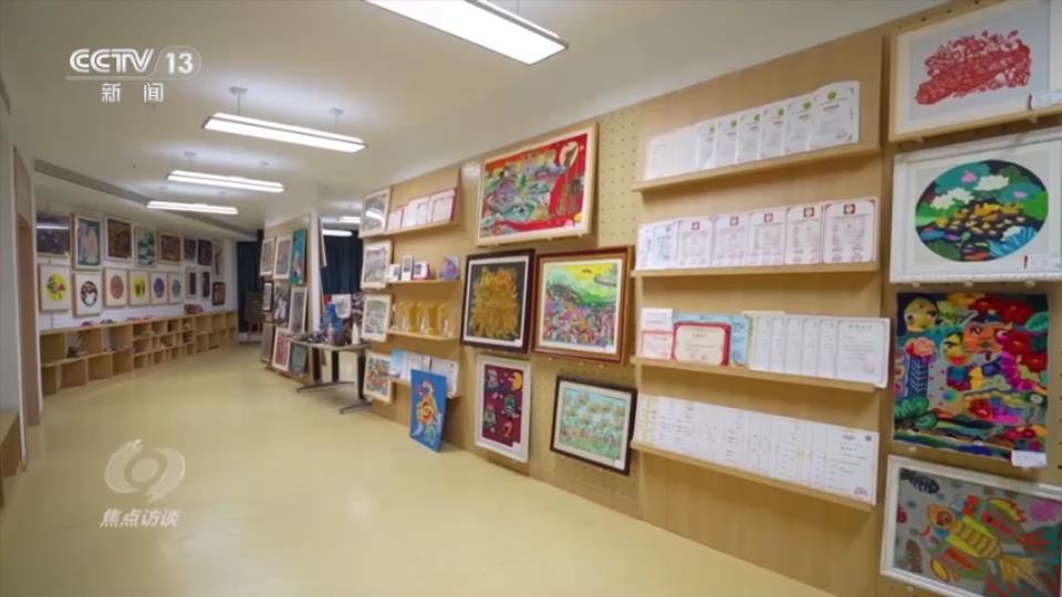 刘小清接受采访的房间是学校的一间画室,一幅幅色彩斑斓的作品记录着在刘小清及老师们的辅导下孩子们的成长。