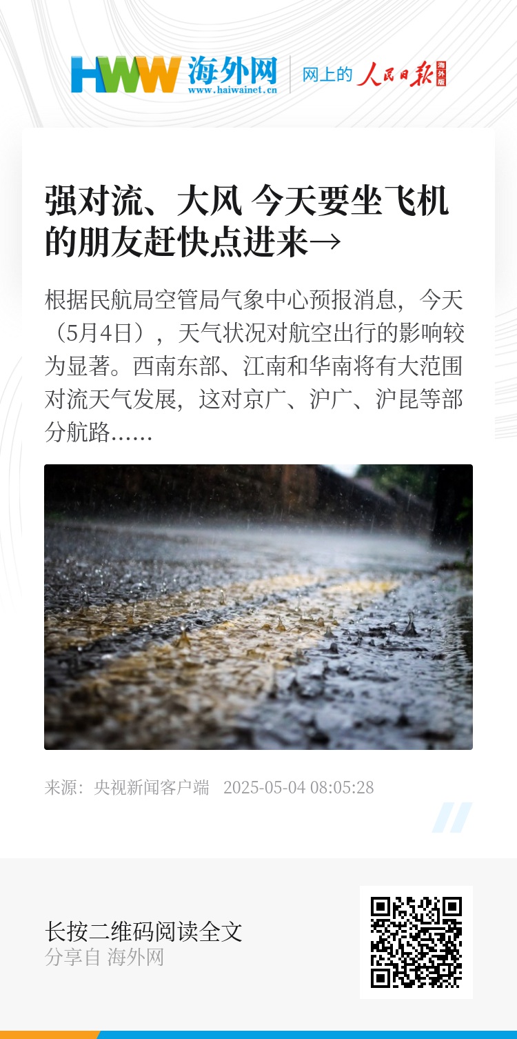 根据民航局空管局气象中心预报消息,今天(5月4日),天气状况对航空出行的影响较为显著。