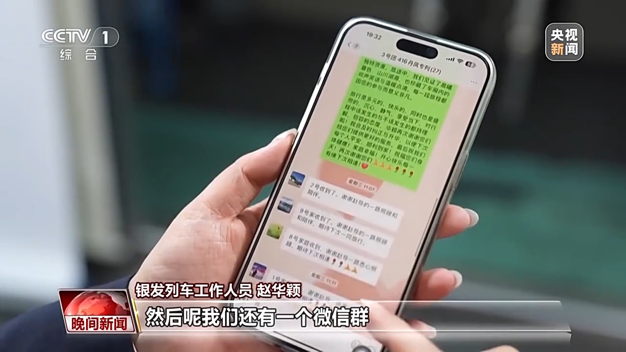 银发列车工作人员 赵华颖:我们都会给叔叔阿姨打电话,咨询一下,我们线路有没有需要改进的地方,然后我们还有一个微信群,在微信群当中,叔叔阿姨会告诉我们一些他们的建议和意见,我们还会做问卷调查。