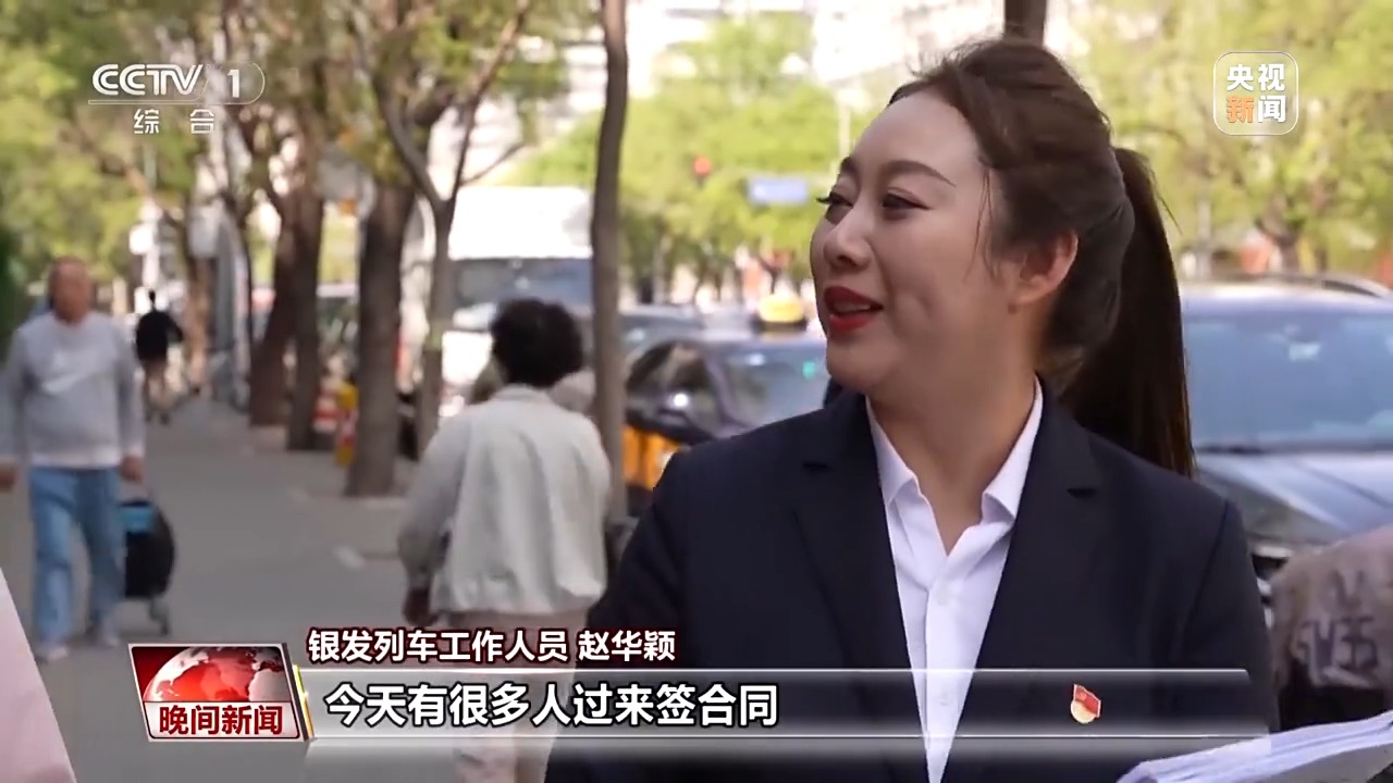 银发列车工作人员 赵华颖:今天有很多人过来签合同,大概有六七份吧。这个数还算比较多的,像“京藏号”和“京和号”属于大团,每个团大概500人。现在叔叔阿姨也比较着急报名,今天都过来签合同了。