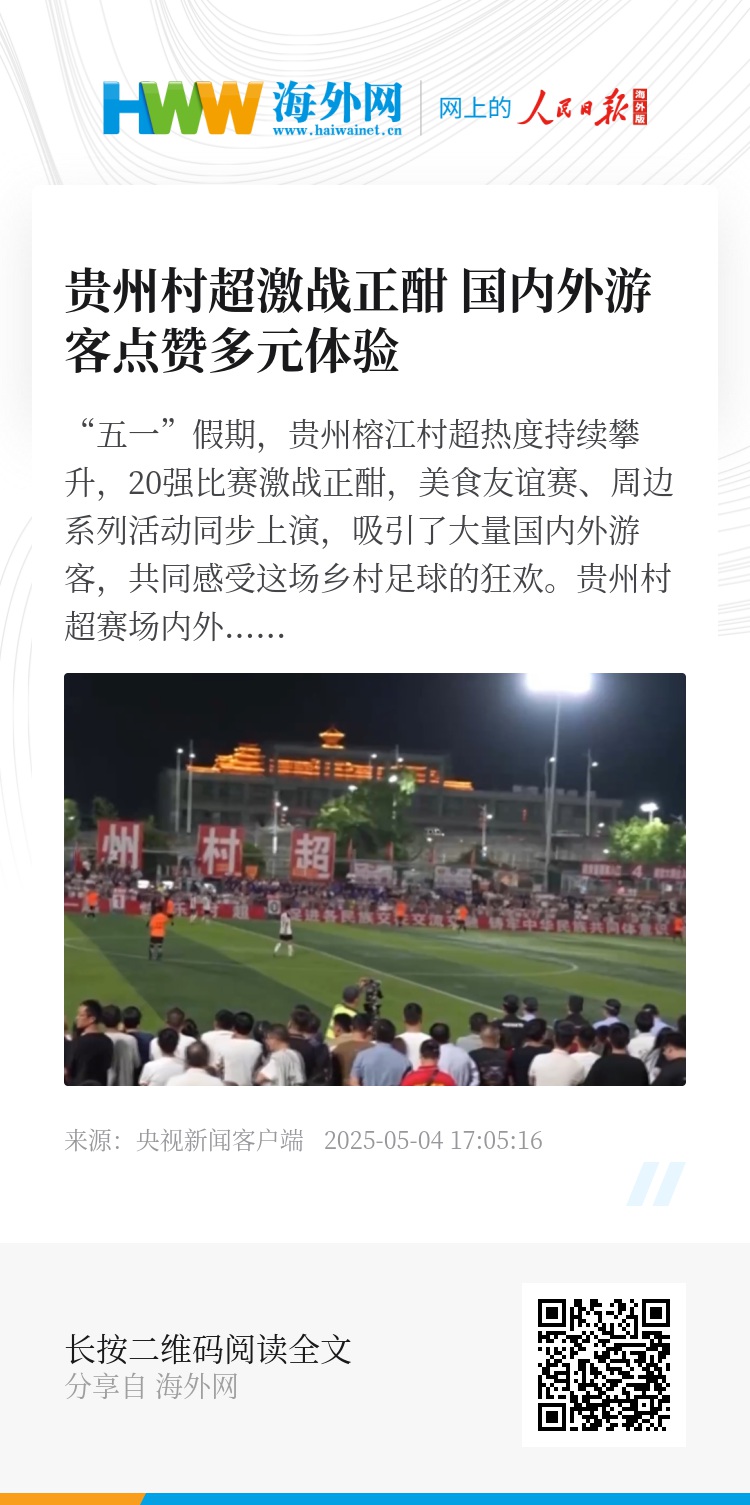 贵州村超以足球为纽带,不仅展现了乡村体育的活力与魅力,更通过丰富多彩的活动,向世界展示了贵州独特的民俗文化和热情好客的风土人情,让来自五湖四海的游客在这个五一假期,收获了难忘的快乐与感动。
