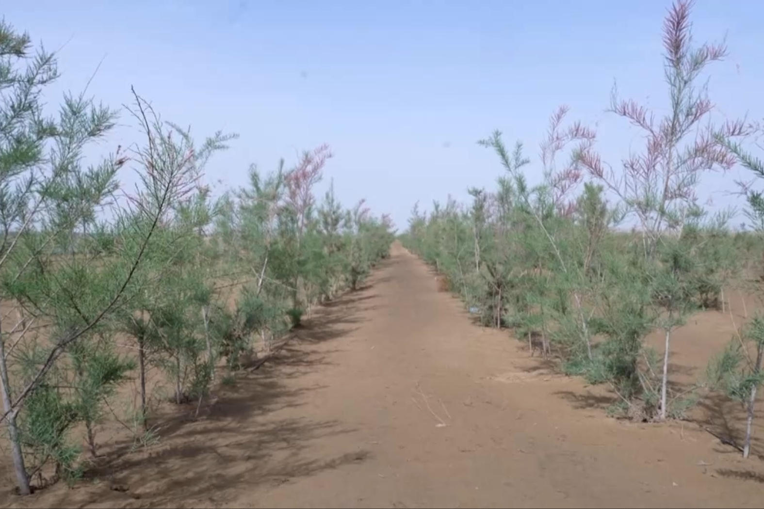 在这些新开发土地的周围,还种植了胡杨、梭梭树、沙柳等耐旱植物,它们根系发达,不仅能够牢牢锁固沙土、降低风速、阻挡风沙侵袭,还能有效增加沙漠中的植被覆盖率,改善当地生态环境。而在林带围合的试验田中,去年冬天试种的冬小麦已进入抽穗期,带来丰收的希望。
