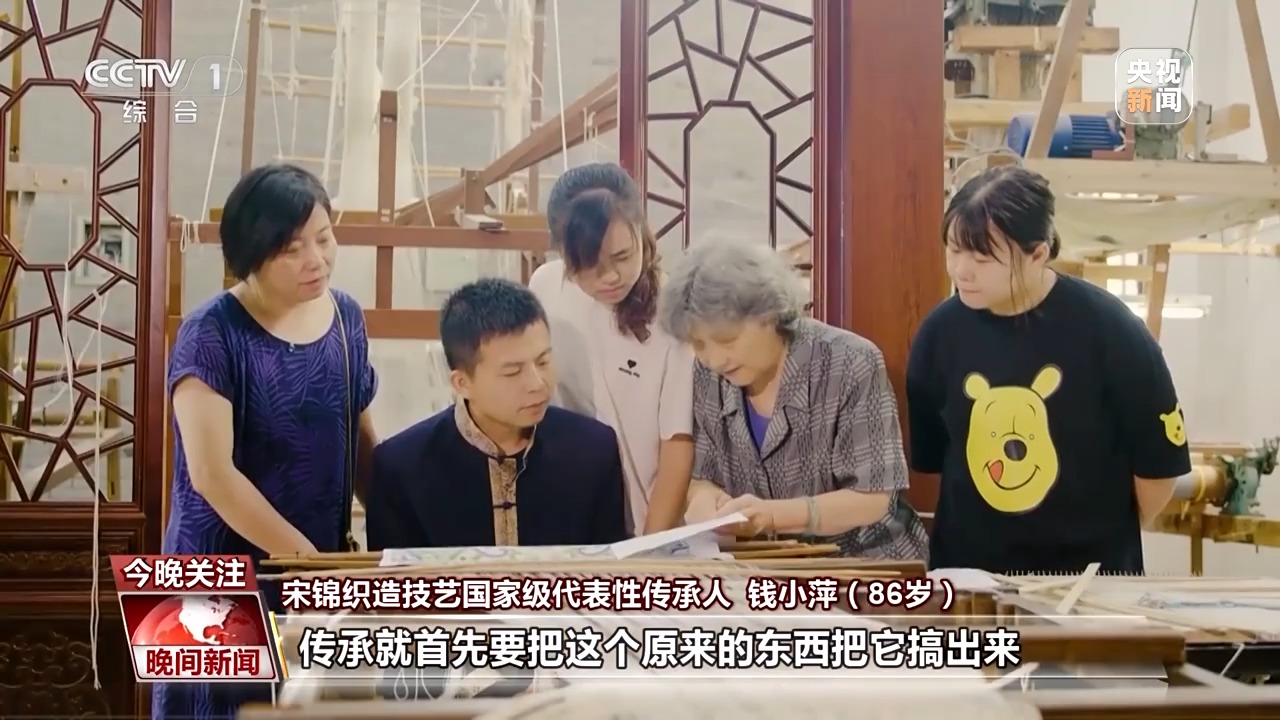 宋锦织造技艺国家级代表性传承人 钱小萍:因为我们丝绸的理论,一直是人一代一代,就是工匠口口相传的,传承首先要把这个原来的东西搞出来,有了复制品,好多专家学者、好多工厂要研究,再去复原传承,就可以有一个实物。