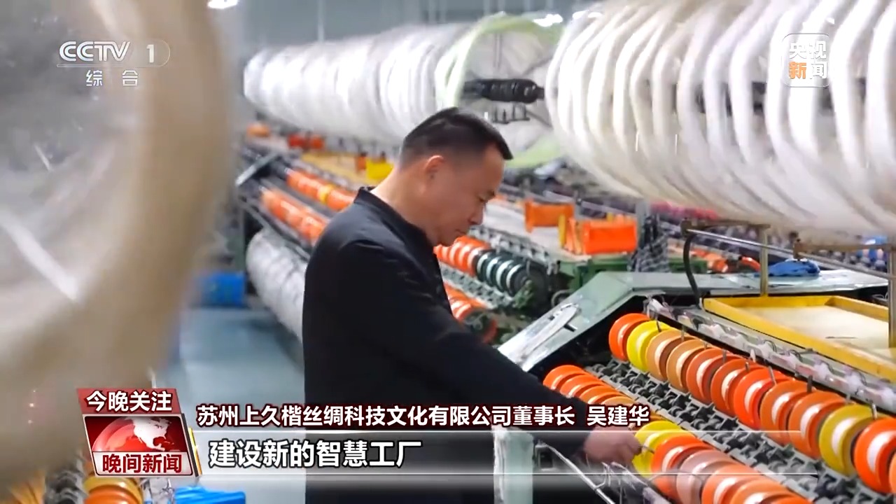 苏州上久楷丝绸科技文化有限公司董事长 吴建华:去年我们虽然赚了有好几千万,但是我们去年花的钱接近上亿,我们采购了很多新的设备,建设新的智慧工厂。