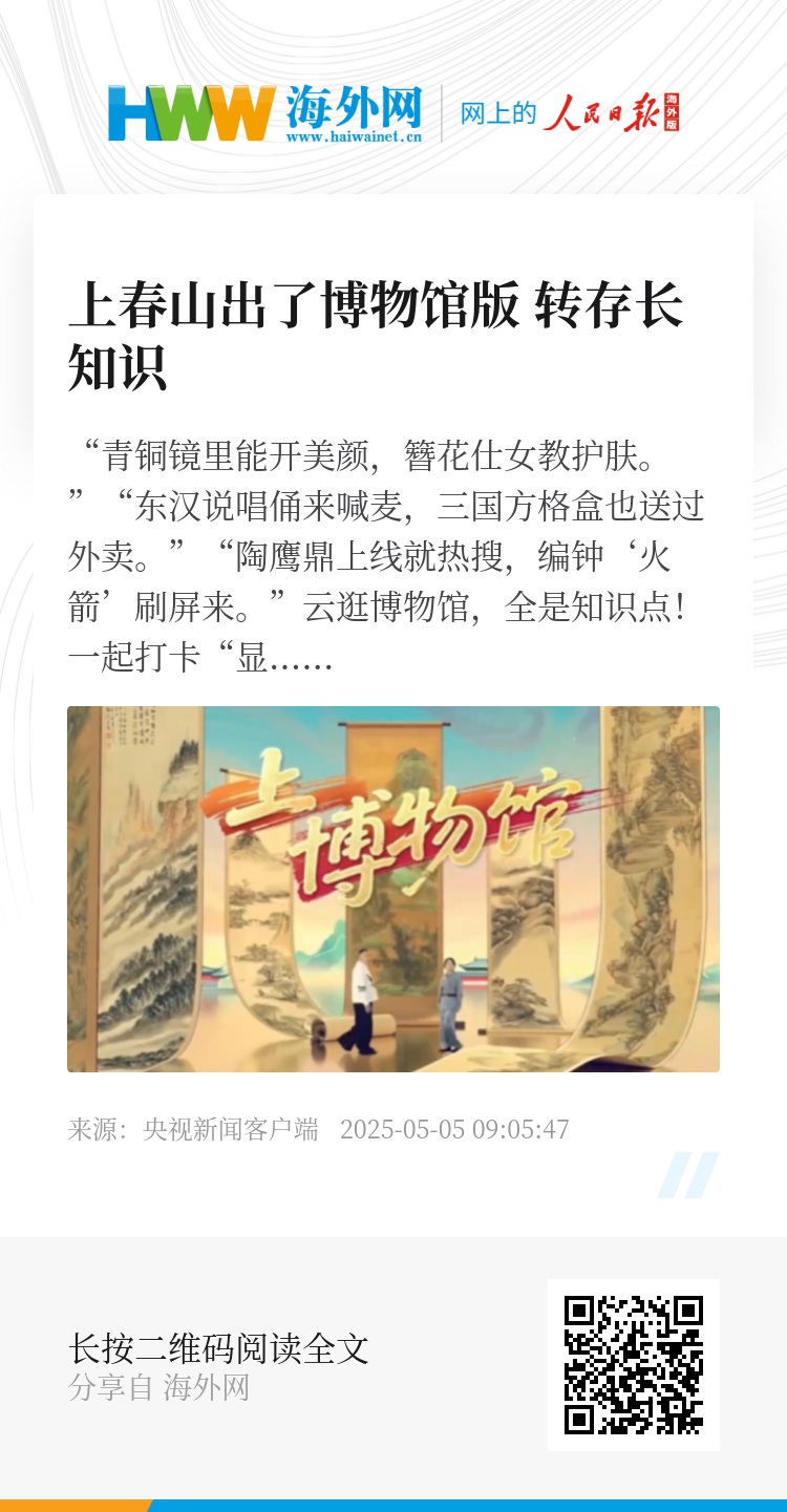 “青铜镜里能开美颜,簪花仕女教护肤。”“东汉说唱俑来喊麦,三国方格盒也送过外卖。”“陶鹰鼎上线就热搜,编钟‘火箭’刷屏来。”云逛博物馆,全是知识点!一起打卡“显眼包”文物,get趣味文博知识!