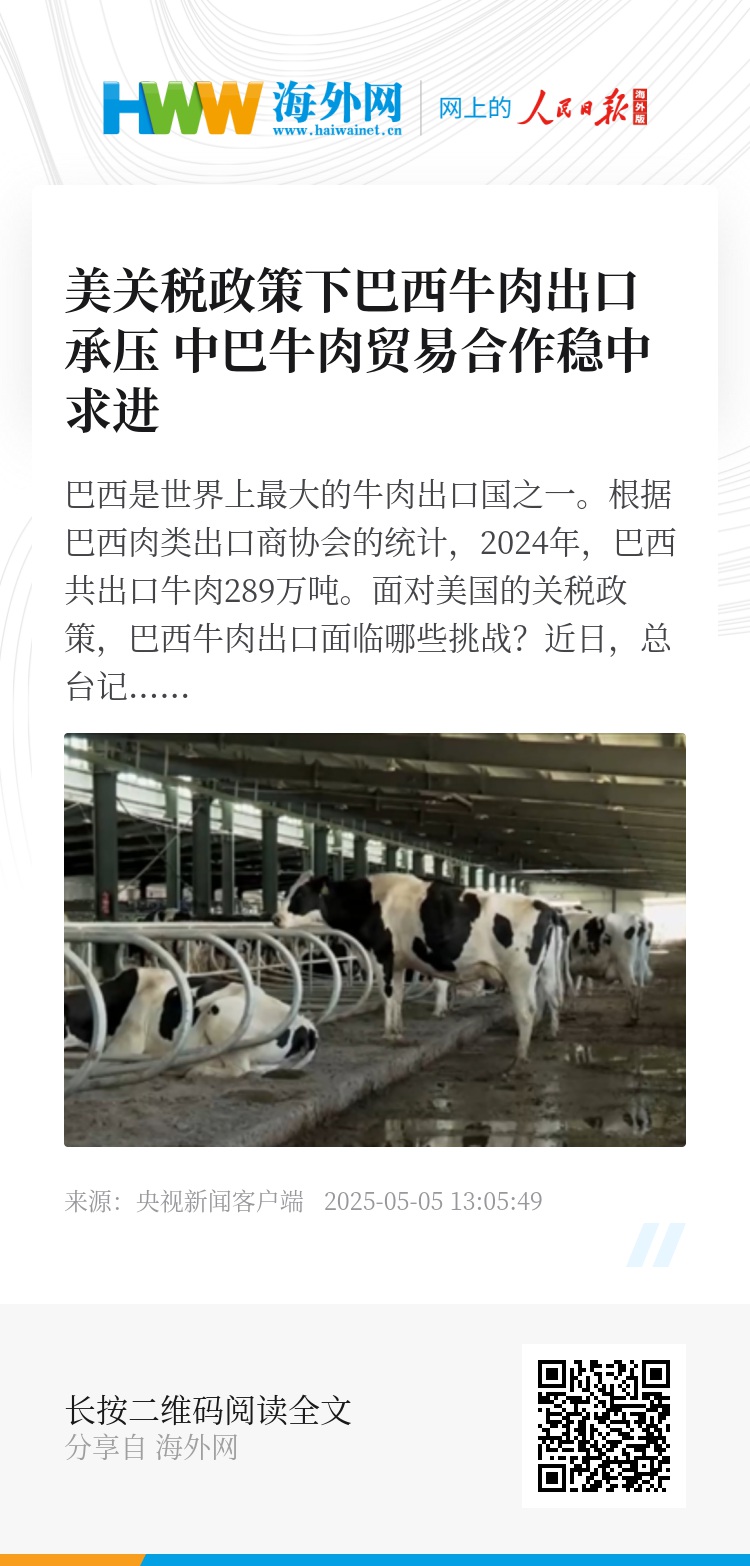 据统计,2024年,巴西出口到中国的牛肉达133万吨,中国是巴西牛肉最主要的出口目的地之一。穆斯特法加表示,出口到中国的牛肉占该国牛肉出口总量的四成还多,毫无疑问,中国是巴西最重要的市场之一。