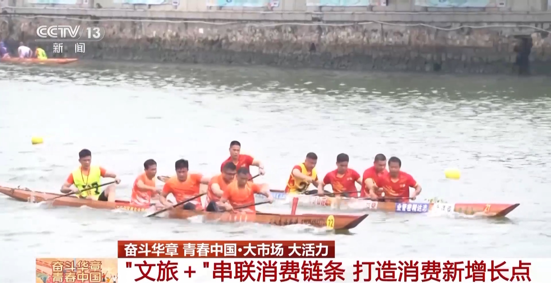 传统文化的赋能一直是假期里消费增长的重要引擎。随着鸣笛声响起,在佛山顺德的功夫之乡,龙舟健儿们火力全开,挥桨劈浪。毗邻河岸的“水乡市集”成为消费焦点,约20个特色摊位汇聚顺德传统美食、非遗手作及潮流文创,吸引众多市民游客驻足购买。