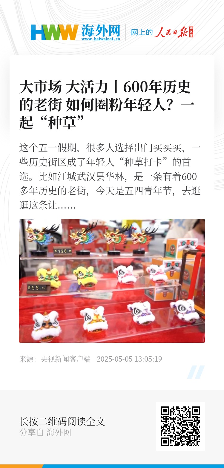 这个五一假期,很多人选择出门买买买,一些历史街区成了年轻人“种草打卡”的首选。比如江城武汉昙华林,是一条有着600多年历史的老街,今天是五四青年节,去逛逛这条让很多年轻人“种草”的街↓