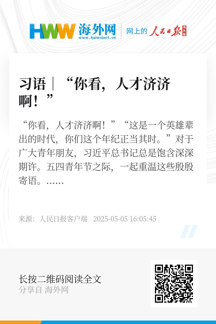 “你看,人才济济啊!”“这是一个英雄辈出的时代,你们这个年纪正当其时。”对于广大青年朋友,习近平总书记总是饱含深深期许。五四青年节之际,一起重温这些殷殷寄语。