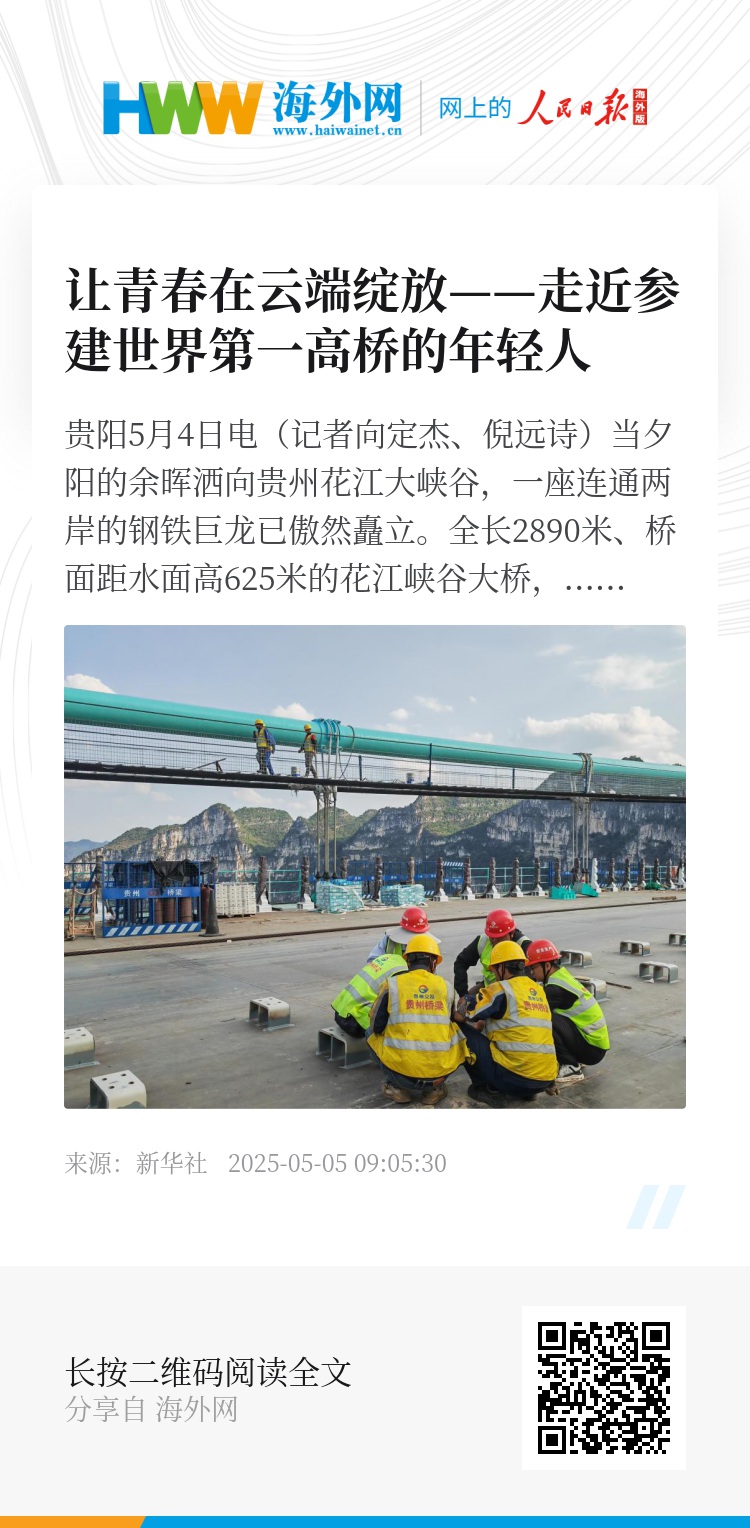 连高山、越峡谷、跨江河,等到大桥通车那天,这些曾与钢筋水泥为伴的青春身影,将在云端永远留下印记——因为最高的不仅是桥,还有他们敢于攀登的梦想。