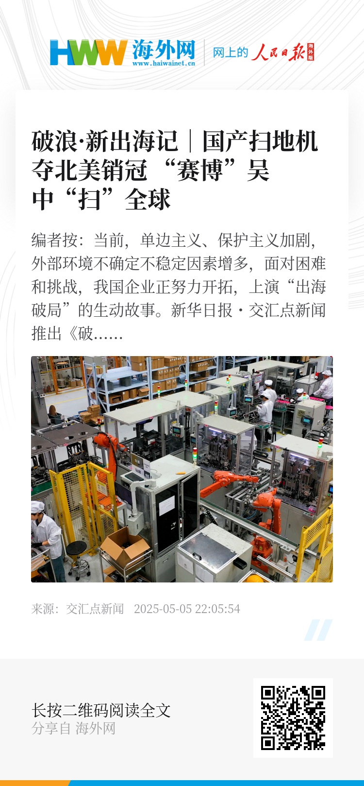 编者按:当前,单边主义、保护主义加剧,外部环境不确定不稳定因素增多,面对困难和挑战,我国企业正努力开拓,上演“出海破局”的生动故事。新华日报・交汇点新闻推出《破浪・新出海记》系列报道,聚焦企业在复杂环境下的坚韧探索与创新突破,展现经济大省以变应变、破浪前行的信心和底气,触摸中国经济勇立潮头、踏浪远行的强劲脉搏,感受中国与世界深度交融、携手共进的磅礴力量。