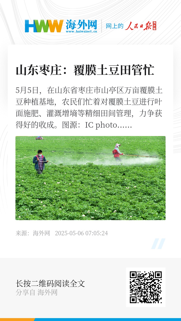 32860434,.山东枣庄:覆膜土豆田管忙,.2025-05-06 07:11:24,.204441,.张荣耀、李萌