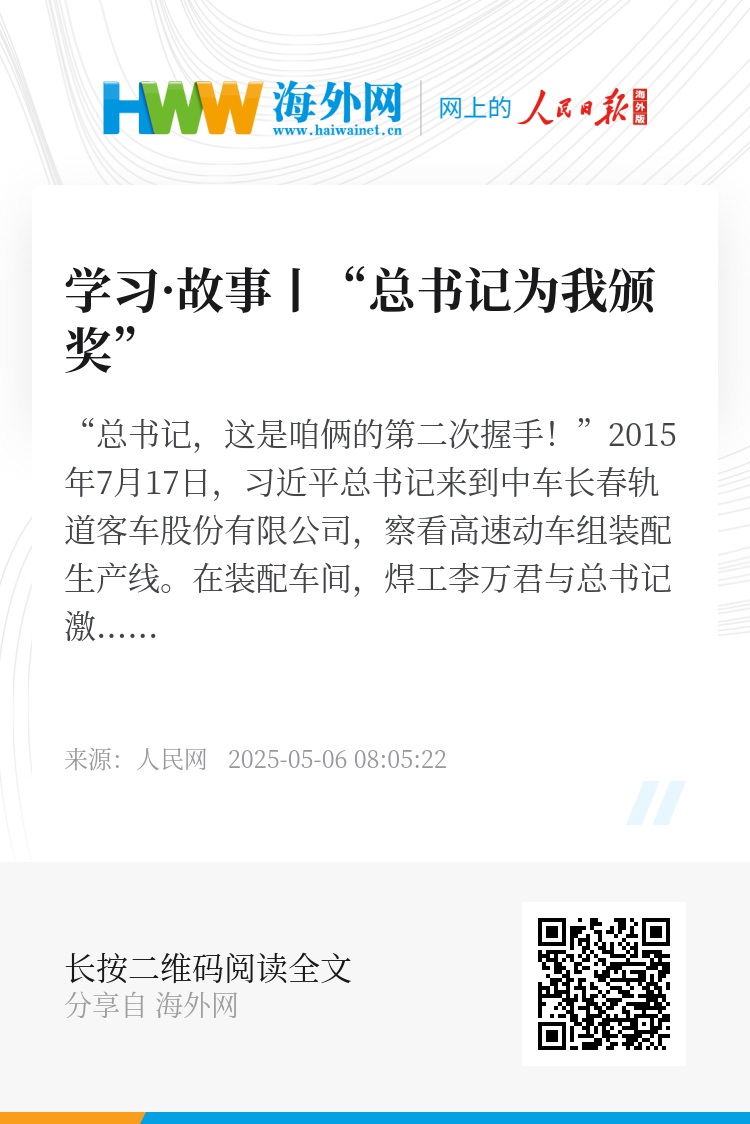 “我从总书记手中接过证书的那一刻,感觉到一份沉甸甸的责任和担当。作为一名技术工人,我要为中国高铁事业努力奋斗,贡献力量。”李万君回忆起当时的场景,话语间满是对使命的执着。