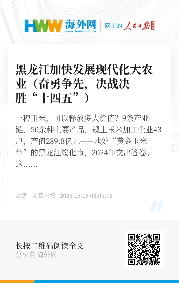 9条产业链,50余种主要产品,规上玉米加工企业43户,产值289.8亿元——地处“黄金玉米带”的黑龙江绥化市,2024年交出答卷。