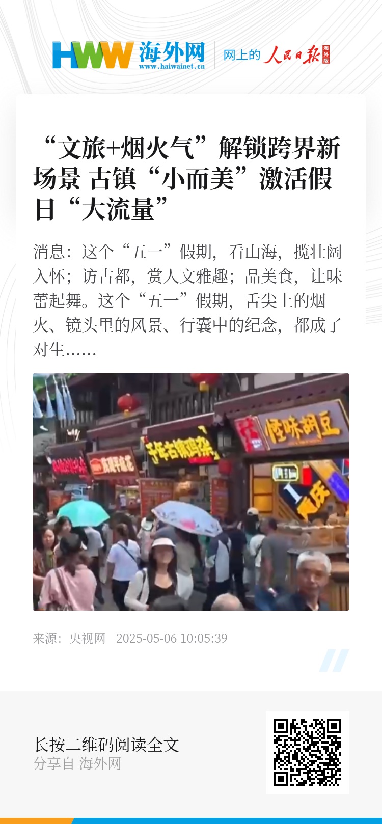 央视网消息:这个“五一”假期,看山海,揽壮阔入怀;访古都,赏人文雅趣;品美食,让味蕾起舞。这个“五一”假期,舌尖上的烟火、镜头里的风景、行囊中的纪念,都成了对生活的最好的奖赏。