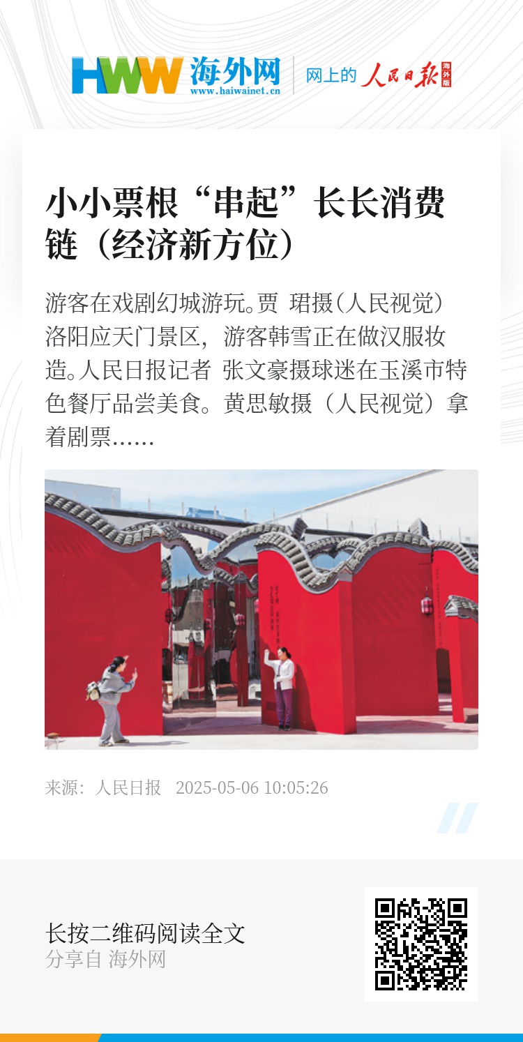 拿着剧票去观展、凭车票享景点优惠、用球赛门票住店有折扣……一张票,跨界联动多样场景,串起长长消费链条,形成“1+1>2”的效应。多地围绕自身文旅资源,推出联合票券、折扣套餐、满减优惠等服务产品,推动文体商旅融合发展。“五一”假期,小小票根,显现撬动消费的巨大能量。