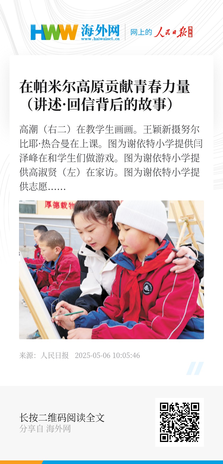 谢依特小学是一所距离边境线47公里的村级小学,近300名学生多为柯尔克孜族护边员的子女。2022年8月,学校成为克州首个西部计划志愿者包校支教的试点学校。当下,23名西部计划志愿者正在这里支教。前不久,他们荣获了2025年度中国青年五四奖章集体。本报记者采访了4名志愿者服务队队员,听他们讲述在帕米尔高原贡献青春力量的故事。