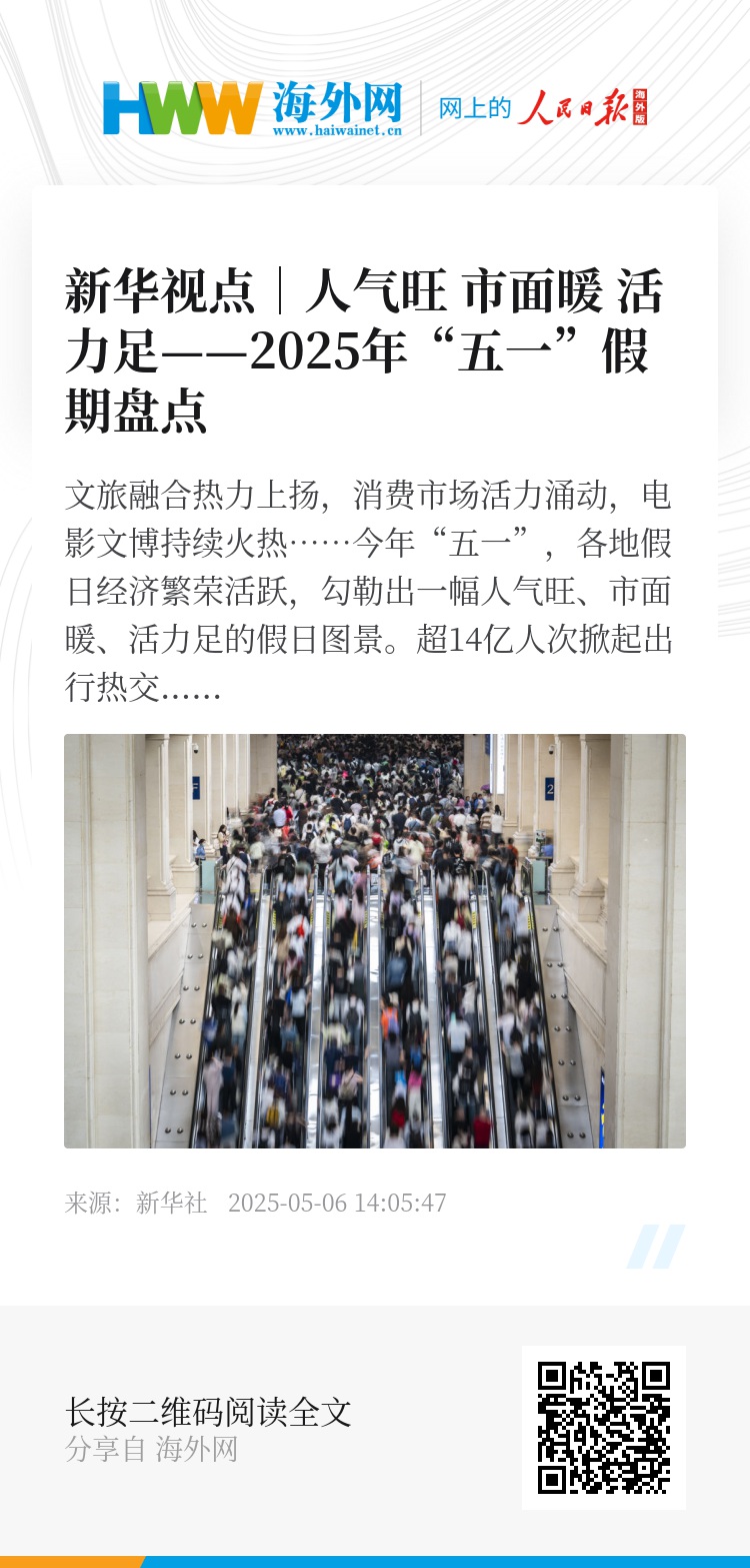 文旅融合热力上扬,消费市场活力涌动,电影文博持续火热……今年“五一”,各地假日经济繁荣活跃,勾勒出一幅人气旺、市面暖、活力足的假日图景。