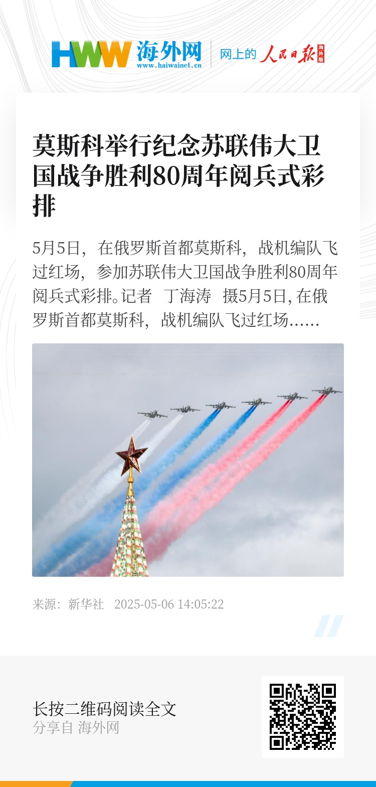 5月5日,在俄罗斯首都莫斯科,战机编队飞过红场,参加苏联伟大卫国战争胜利80周年阅兵式彩排。