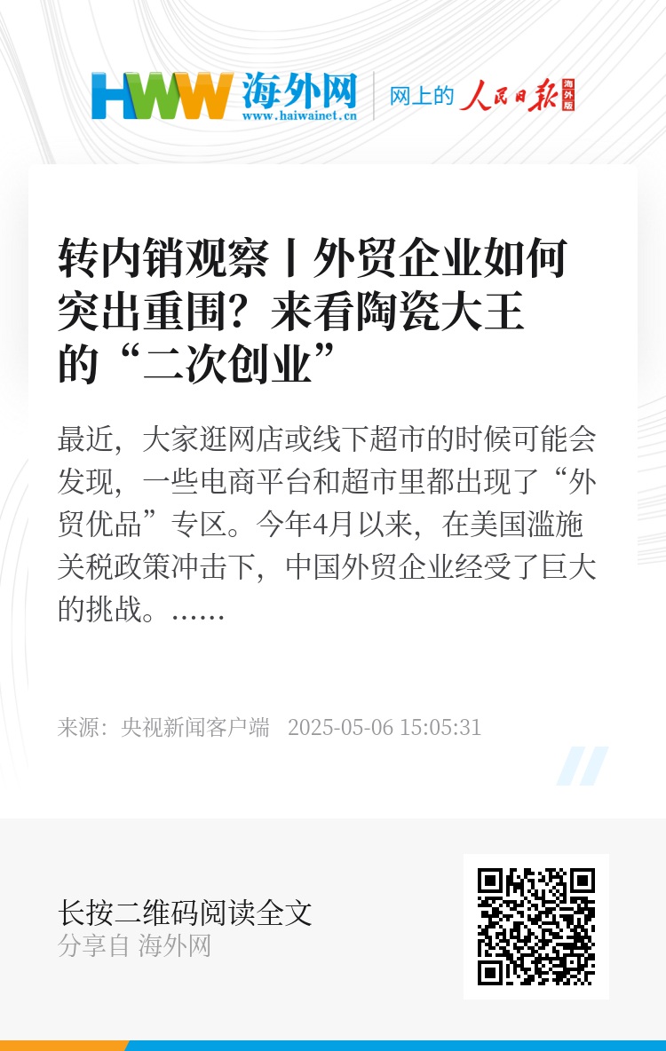 从今天起,新闻频道推出系列报道《转内销观察》,带您看无数个“外贸优品”专区背后,外贸企业如何凭借我国超大市场应对挑战,突出重围。