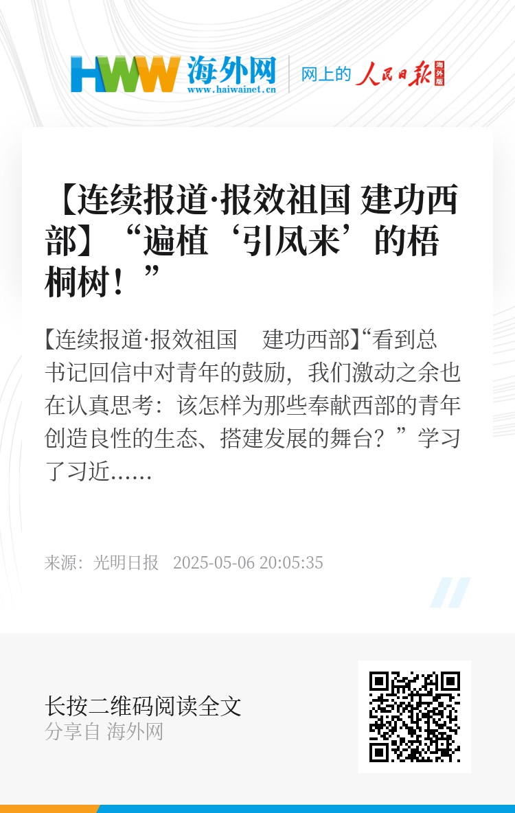 “我们正在遍植‘引凤来’的梧桐树!”甘肃省委组织部人才工作处处长范小波说,总书记对青年的关心与勉励令人感动,也向西部发出了进一步改善人才政策的“动员令”,“甘肃热切欢迎各地青年!我们会不断推出‘真金白银’的政策举措,为你们托起双翼,在西部尽情翱翔!”