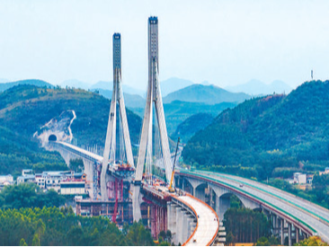 由广西交通投资集团投资建设的广西柳梧铁路盘龙柳江特大桥的钢箱梁吊装、斜拉索张拉等关键工序加快推进。盘龙柳江特大桥是柳梧铁路的控制性工程之一,全长三千七百多米。图为近日拍摄的该项目施工现场。