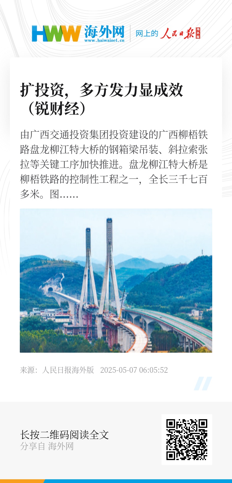 日前,稳就业稳经济推动高质量发展的若干举措对外发布,积极扩大有效投资是其中一个重要方面。国家发展改革委有关负责人介绍,相关举措包括完善消费基础设施、大力提振民间投资积极性等。中国人民银行也明确表示,将支持金融机构创新金融工具,加大中长期贷款投放力度,做好“两新”“两重”等重点领域的融资支持。