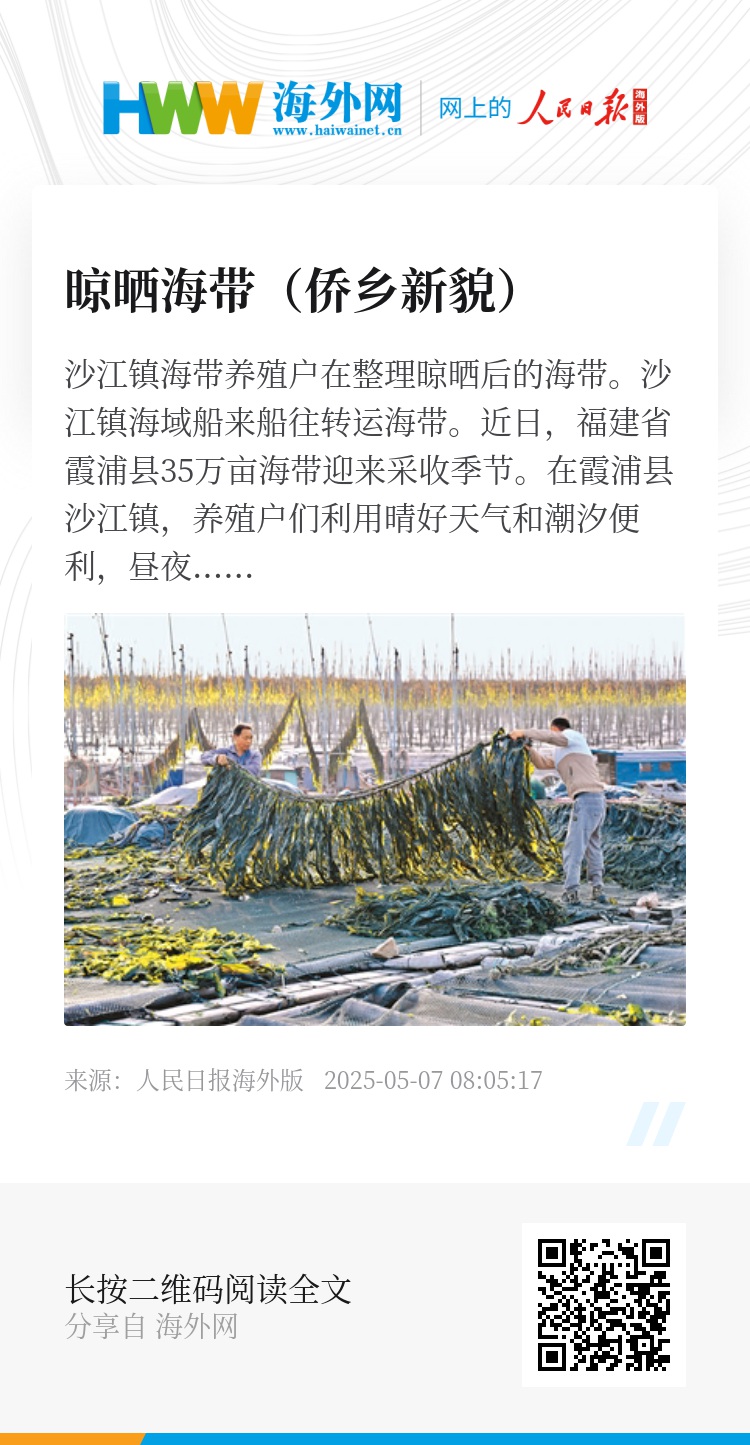 2024年,霞浦全县鲜海带总产量160多万吨,总产值约35亿元,海带相关产业就业人员达5万余人,成为带动当地群众增收、促进乡村全面振兴的重要支柱产业。