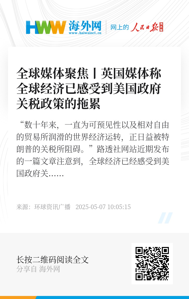 路透社网站近期发布的一篇文章注意到,全球经济已经感受到美国政府关税政策的拖累。