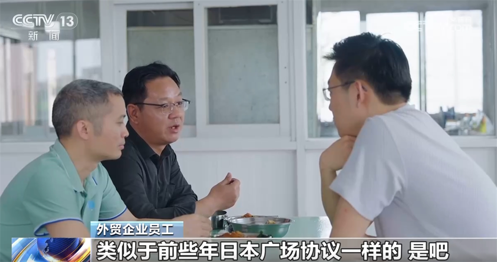 外贸企业员工称:“中国的企业必须要应对,要不然,要是向美国妥协,搞得不好会更惨,类似于前些年日本广场协议一样的,是吧?你没有办法回避,企业和国家的命运是共同体。”