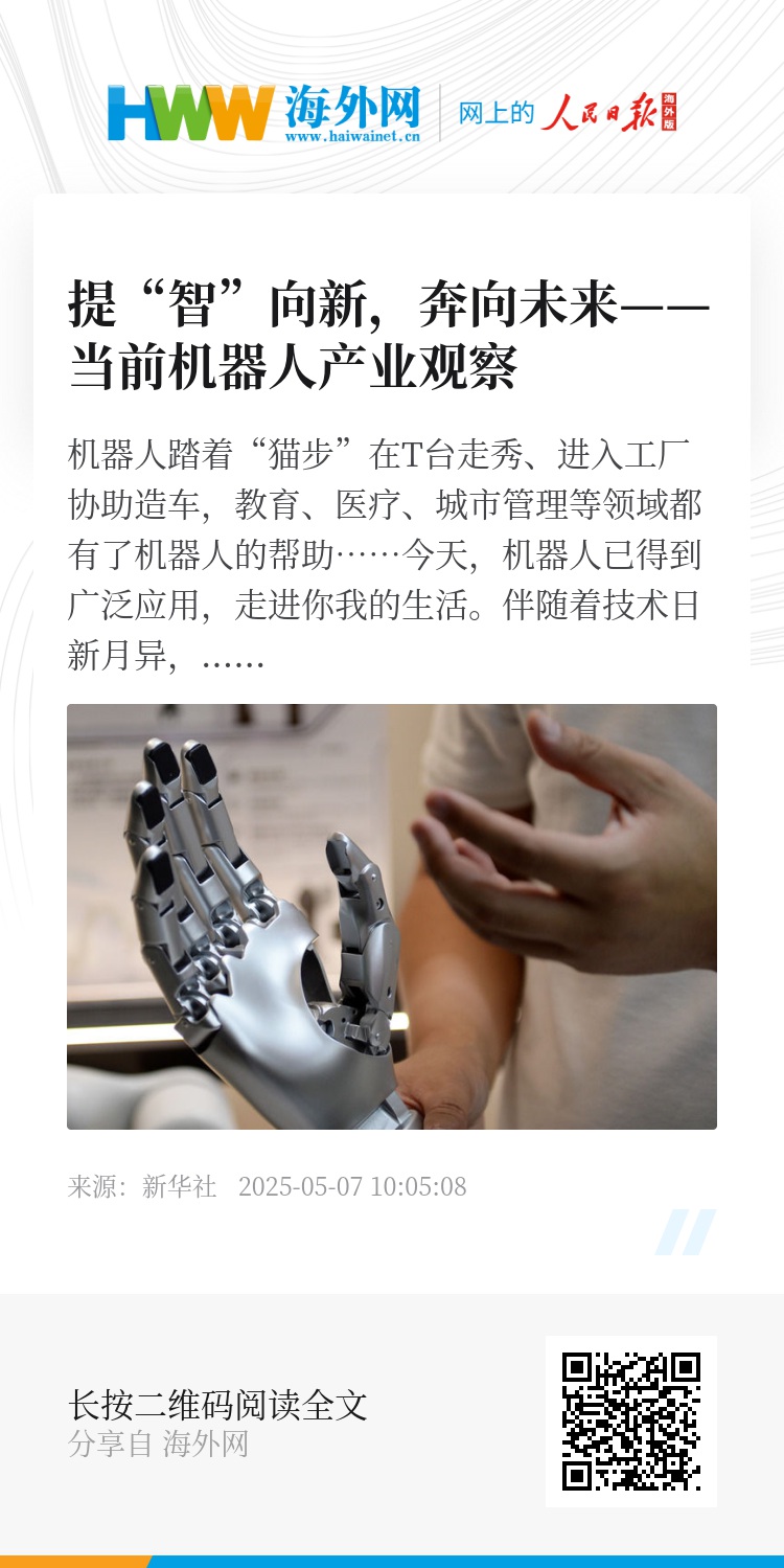 “我国已形成覆盖上下游各领域的机器人全产业链布局,自主化率、产品竞争力、重点行业渗透率得到进一步提升。”国投招商先进制造产业研究院资深研究员宋洪军说,虽然当前仍面临运动控制算法、高精度传感器等瓶颈,一些环节“卡脖子”尚未根本解决,但政策与市场的协同效应推动产业链向深布局。“机器人产业正经历从‘零件组装’到‘智慧共生’的质变。”
