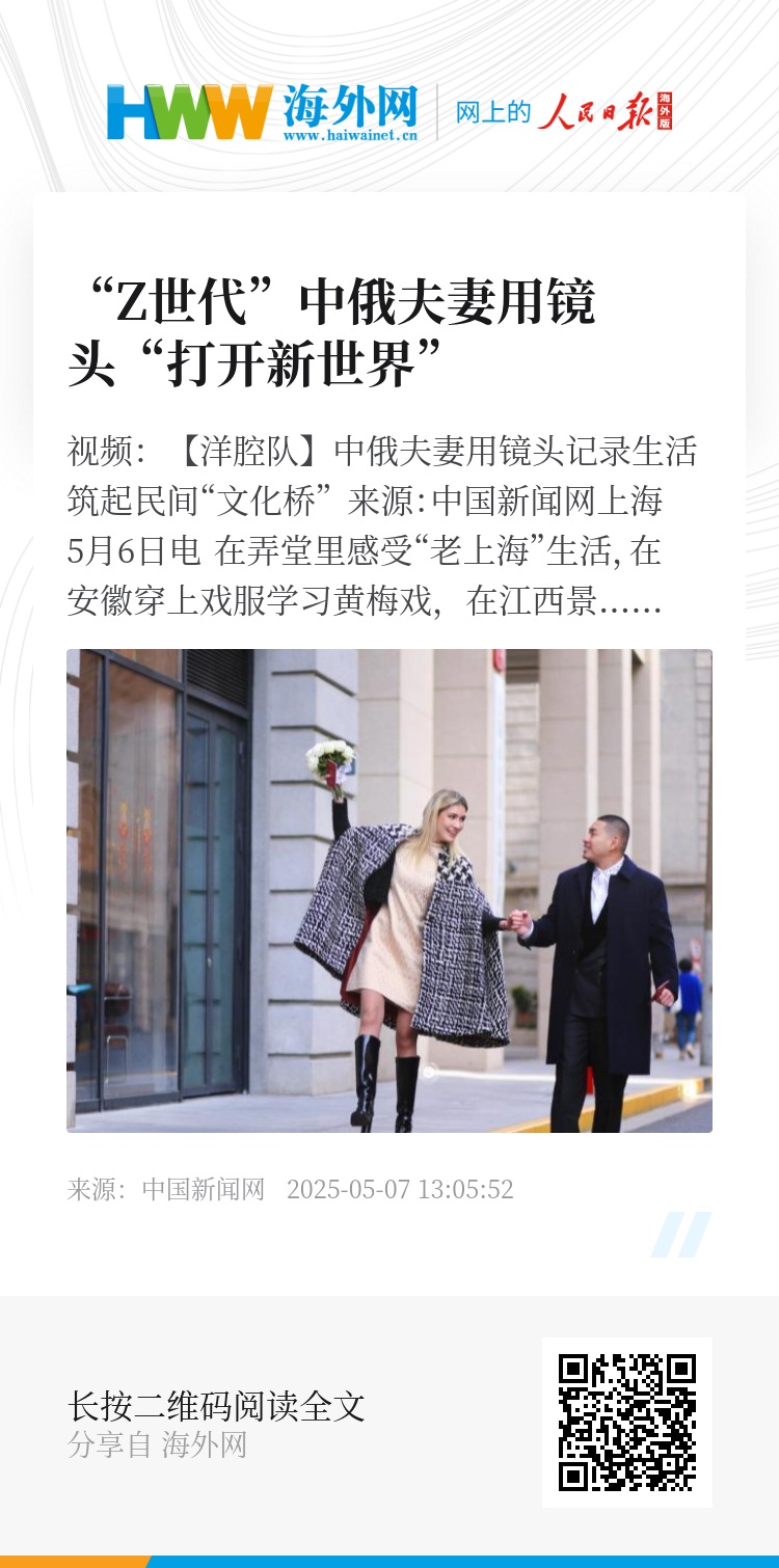 视频:【洋腔队】中俄夫妻用镜头记录生活 筑起民间“文化桥” 来源:中国新闻网