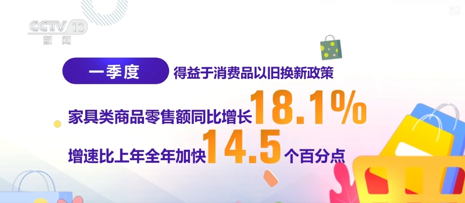 其中,得益于消费品以旧换新政策,家具类商品零售额同比增长18.1%,增速比上年全年加快14.5个百分点。