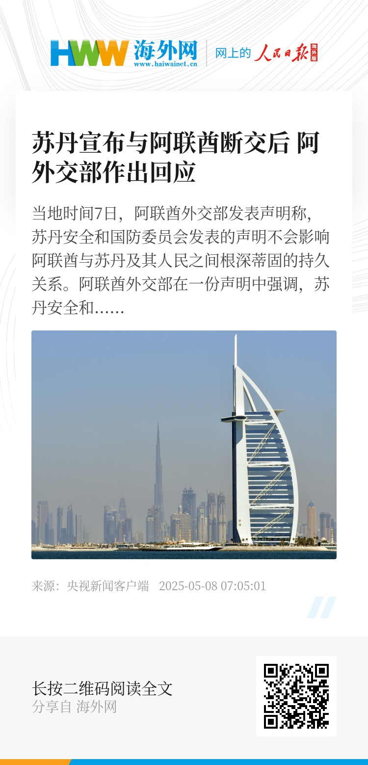 阿联酋外交部强调,阿联酋在过去50年中一直是苏丹最坚定的支持者之一,并将继续向苏丹人民提供支持和声援。(总台记者 张卓雅)