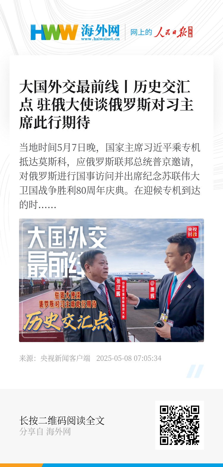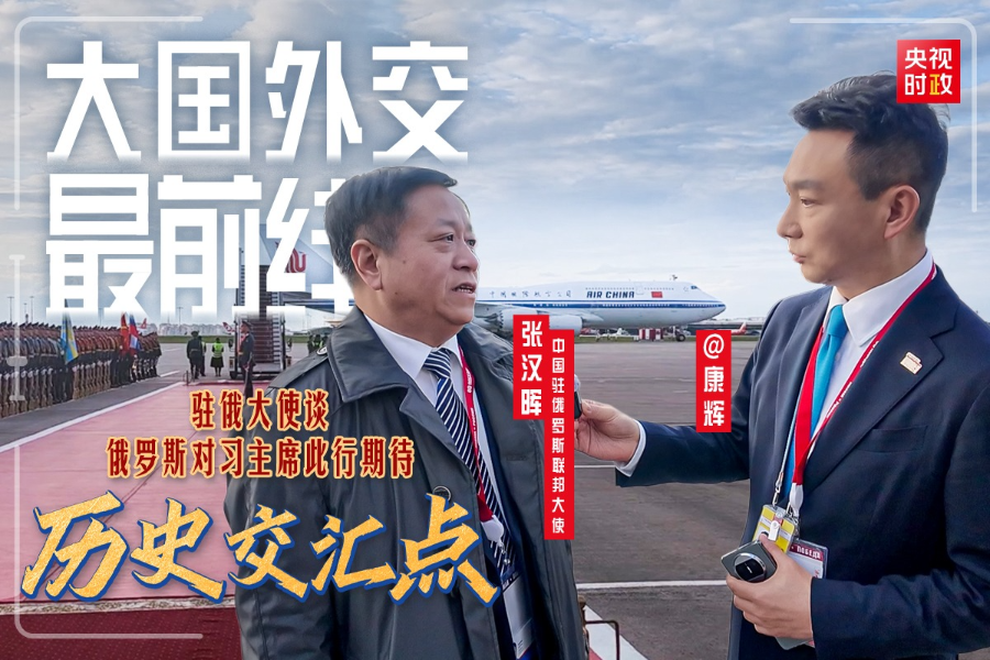 在迎候专机到达的时间里,“大国外交最前线”记者康辉与同在机场迎接的中国驻俄罗斯联邦大使张汉晖进行了短暂交流。百年变局加速演进之际,一个具有特殊历史意义的年份,习主席此次俄罗斯之行,世界瞩目。
