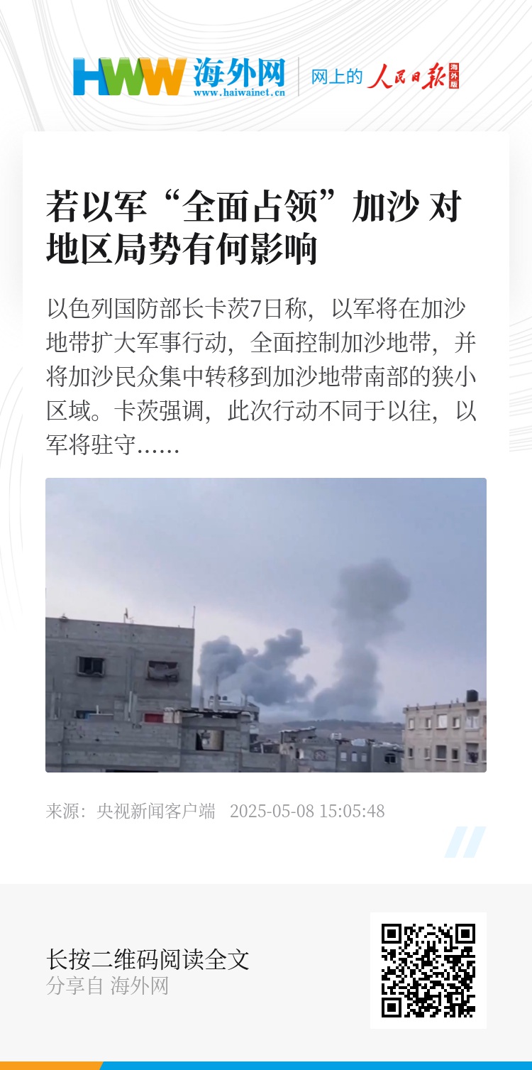 那么,如果以军“全面占领”加沙,将对地区局势有何影响?
