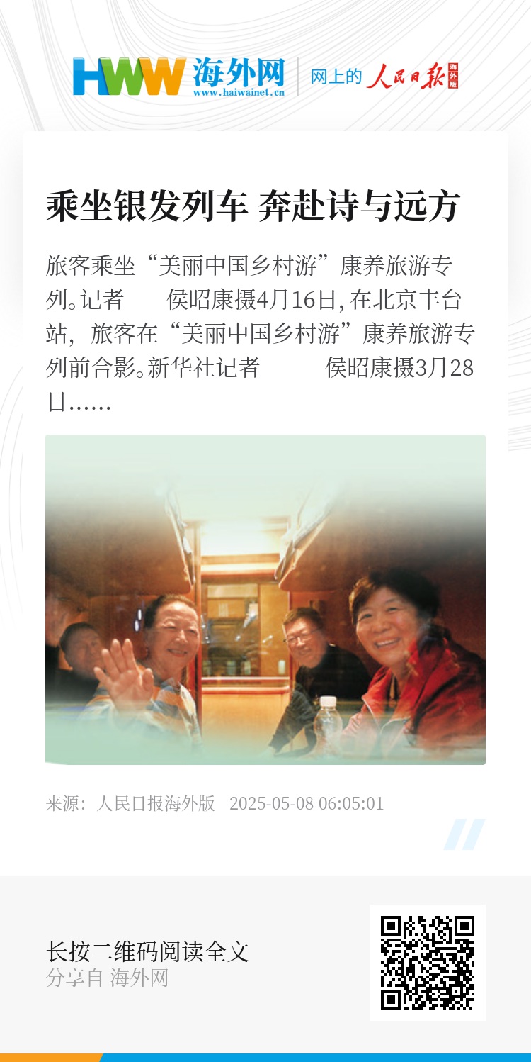 春尽夏起,繁华更盛,列车的车轮滚滚向前。随着中国铁路网络的不断延伸、服务质量的持续升级,越来越多银发列车将载着人民对美好生活的向往,驰骋于锦绣山河之间,在时代的轨道上加速前行,激荡起“银发经济”的活力浪花。(严 冰 龚煜煊 管诗雨)
