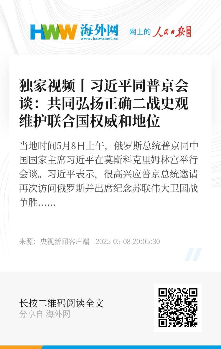 习近平表示,很高兴应普京总统邀请再次访问俄罗斯并出席纪念苏联伟大卫国战争胜利80周年庆典。